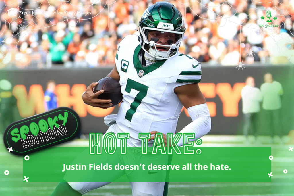 Justin Fields just can’t catch a break. He was drafted the Bears in 2021 and it feels like his career has gone down hill since….to little fault of his own. You see, his time with the Bears was nothing short of a disaster. Fans and staff were putting the blame on Justin for their losses. Then, he’s traded to the Steelers for a brief stint and in steps Caleb Williams: a rookie with a rough start. But somehow, even given the same situation, the disaster wasn’t on the quarterback anymore. The fault fell to the o-line or the lack of weapons (excuse DJ Moore?!) and the poor coaching, etc.. Justin did relatively well in Pittsburgh, despite eventually being benched after six games. But, during those six games, Fields only threw one interception and managed to accumulate five touchdowns and 1, 106 yards. Not too shabby for someone who was allegedly one of the worst QBs in history. Then he slides over to the Jets and although their record doesn’t show it, he isn’t playing all that badly. We are heading into week 9 and he hasn’t thrown a single interception! He’s slightly shy of the yardage he hit in Pittsburg (1,089) , and tied for touchdowns (though it took him eight weeks instead of six). Guys, he’s the only quarterback this season with at least 100 passes and ZERO interceptions. So why the hate? Because the Jets sit at 1-7? That reflects on more than just the QB and if anyone, the owner should be aware of that.