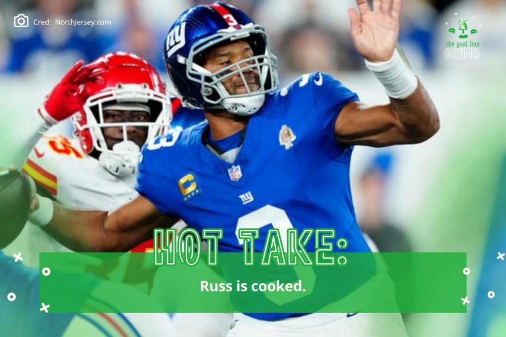 I’m sure you’re aware by now that Jaxson Dart will be starting against the Chargers this week…and if not, well you are now. Russell Wilson threw two interceptions, zero touchdowns (the only touchdown was a 13-yd run by Cam Skattebo), and barely made it across mid-field. against the Chiefs I had to adjust my television settings to be sure it wasn’t the Bengals I was watching. Russ stepped out onto the field Sunday night and well, it went a little something like this: 4th down incomplete, punt, interception, run touchdown, interception, punt field goal, 4th down incompletion, 4th down 2-yd run. That’s it, that was the entirety of the Giants offense. Now, they did slip Dart into a couple of plays and quite honestly, that was the only time they managed to gain any momentum…just for Daboll to pull him right back out. I’m not sure that he’s quite ready for the big show just yet (maybe give Jameis a shot), but I think we can all come to terms with the fact the Russell Wilson is not HIM.